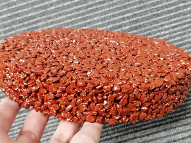 2、选择经打磨过洗干净的各种颜色的水洗石与透明度好的胶粘石专用胶水按照比例混合搅拌均匀;